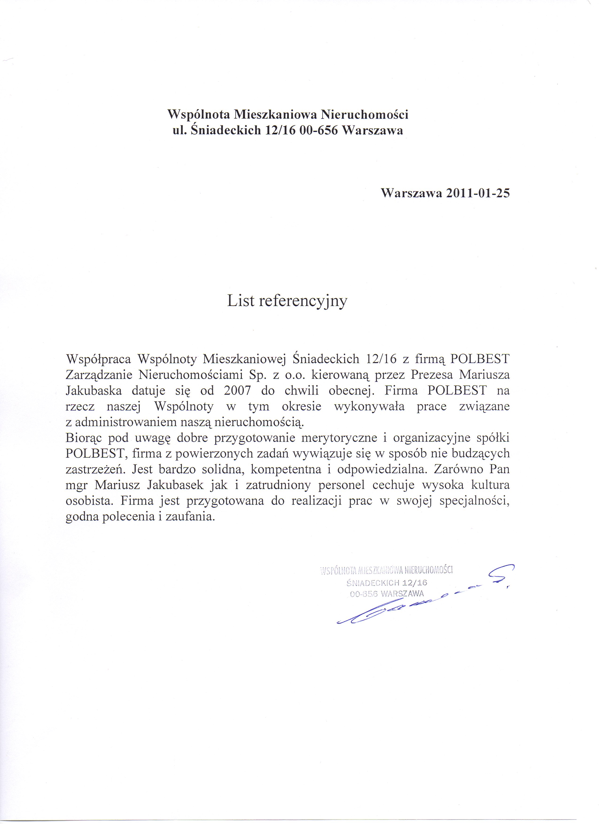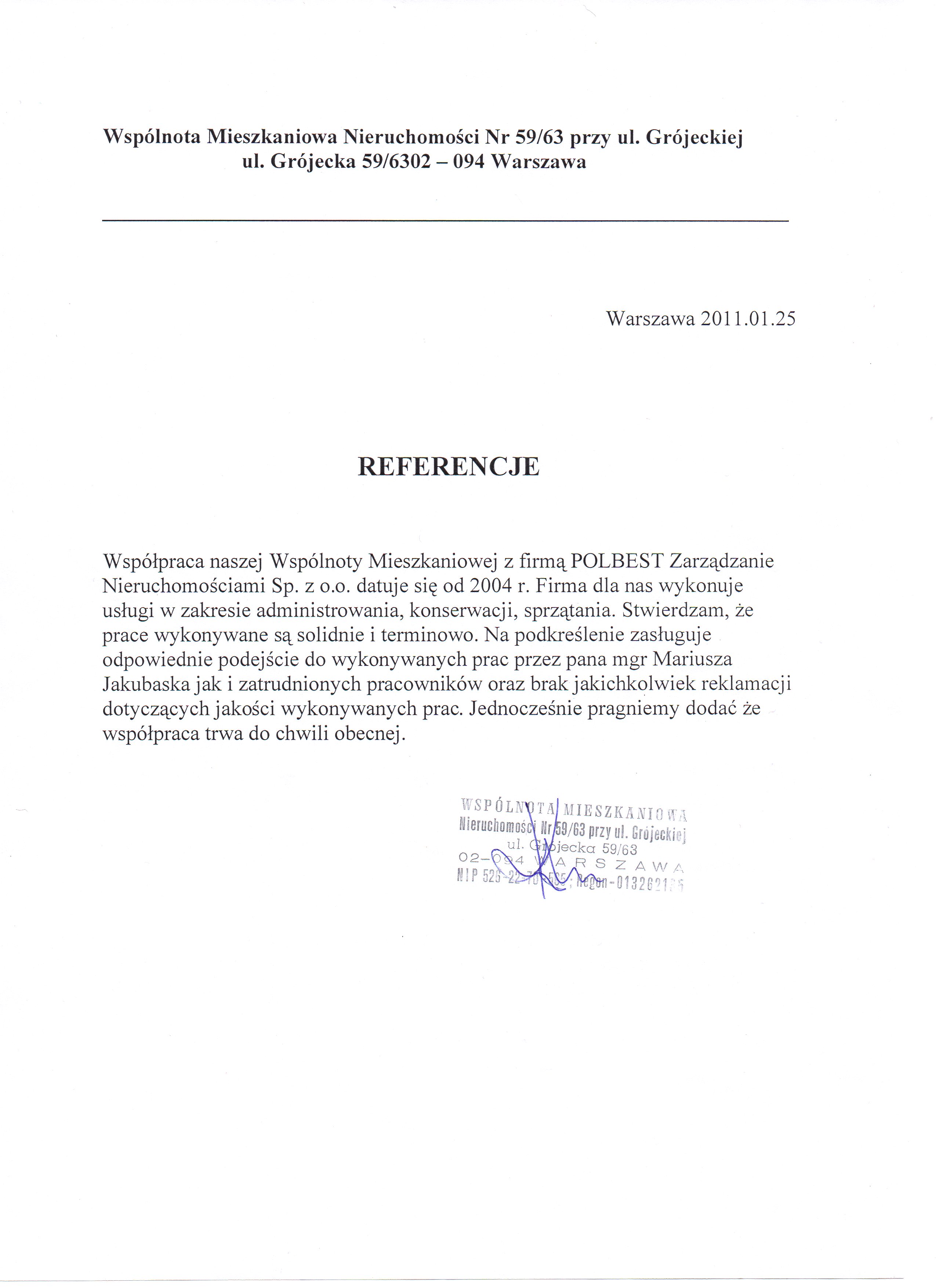 Zobacz kilka z udzielonych nam referencji. Jeśli chcesz upewnić się, że jesteśmy firmą, z którą warto się związać - wyślij do nas wiadomość email lub po prostu zadzwoń. Na Twoje życzenie skontaktujemy Cię z członkami Zarządów obsługiwanych przez nas Wspólnot - abyś mogła lub abyś mógł u źródła zasięgnąć informacji o jakości naszych usług.